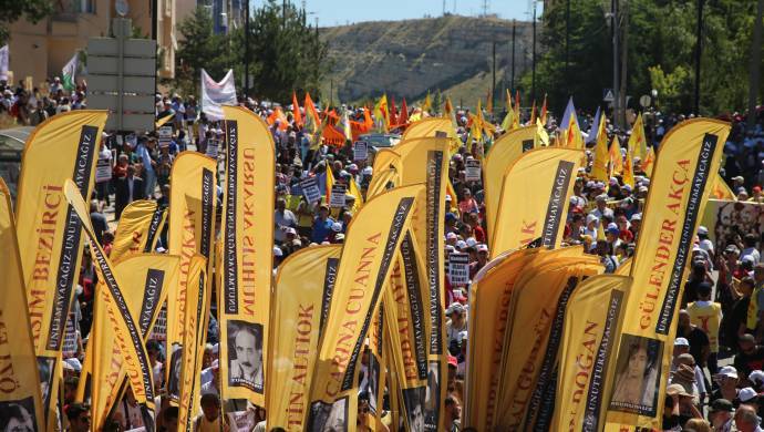 Madımak Katliamı’nın 26’ıncı yıl dönümünde on binlerce kişi, “Sivas’ın hesabını soracağız” sloganlarıyla katliamın gerçekleştiği Madımak Oteli’nin önüne doğru yürüyüşe geçti