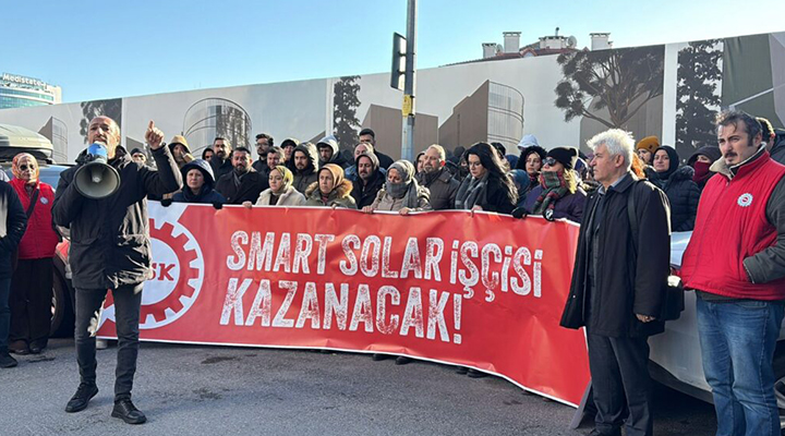 Birleşik Metal-İş Sendikası üyesi Smart Solar işçileri, sefalet ücretine karşı başlattıkları grevin 69. gününde patronun grev kırıcılığına karşı dört ilde eylem yaptı.