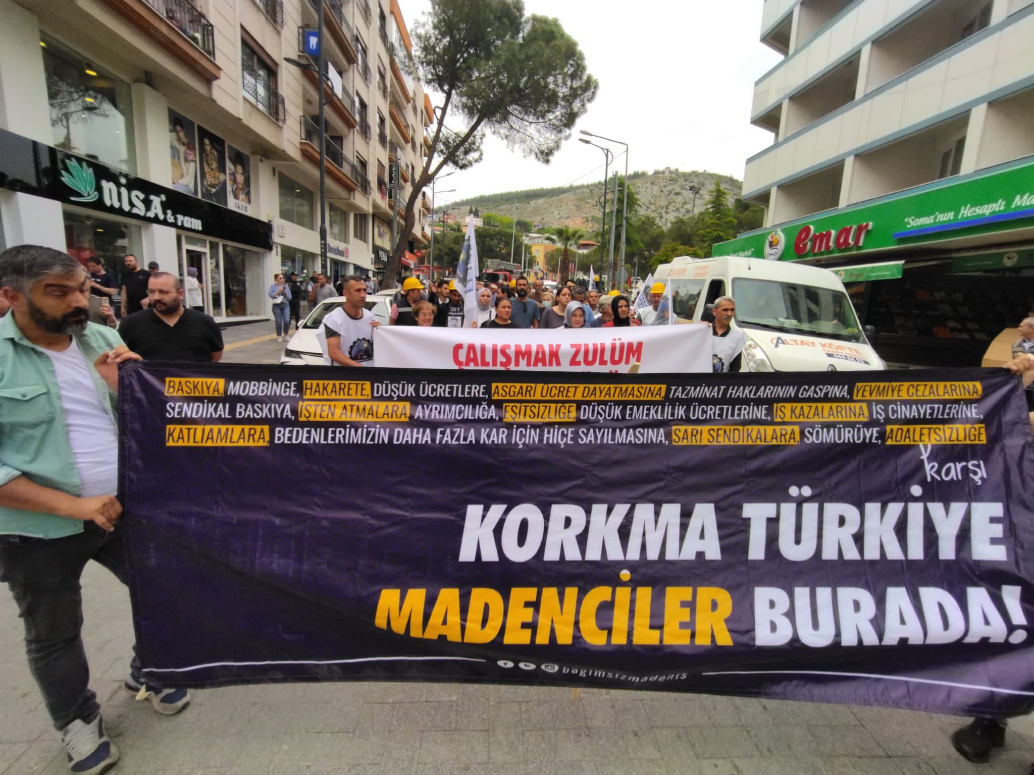 Türkiye tarihinin en büyük işçi katliamı olan, 301 madencinin yaşamını yitirdiği ‘Soma Katliamı’nın üzerinden 8 yıl geçti. Bağımsız Maden İşçileri Sendikası (Bağımsız Maden- İş) Soma’da 301 maden işçisinin ölümünün yıl dönümüne ilişkin Soma’da açıklama yaptı. Soma Hükümet Meydanı’nda toplanan kitle açıklamanın yapıldığı Madenci Anıtı’na kadar yürüdü. Açıklamaya yaşamını kaybeden madencilerin aileleri ve maden işçilerinin yanı sıra Nakliyat İş, PTT Sen temsilcileri ve çok sayıda kişi katıldı.