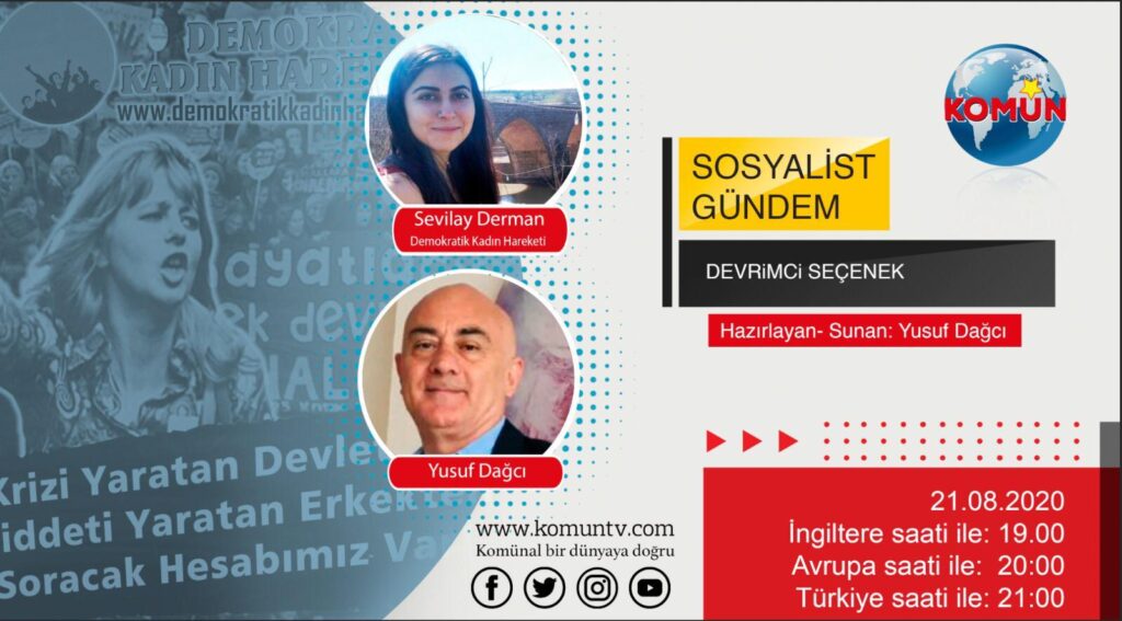 Komün TV, ‘Sosyalist Gündem’ başlığıyla devrimci, demokrat ilerici güçlerle gündemi değerlendirmeye devam ediyor. Yusuf Dağcı’nın sunduğu Sosyalist Gündem programının konuğu Demokratik Kadın Hareketi temsilcisi Sevilay Derman.