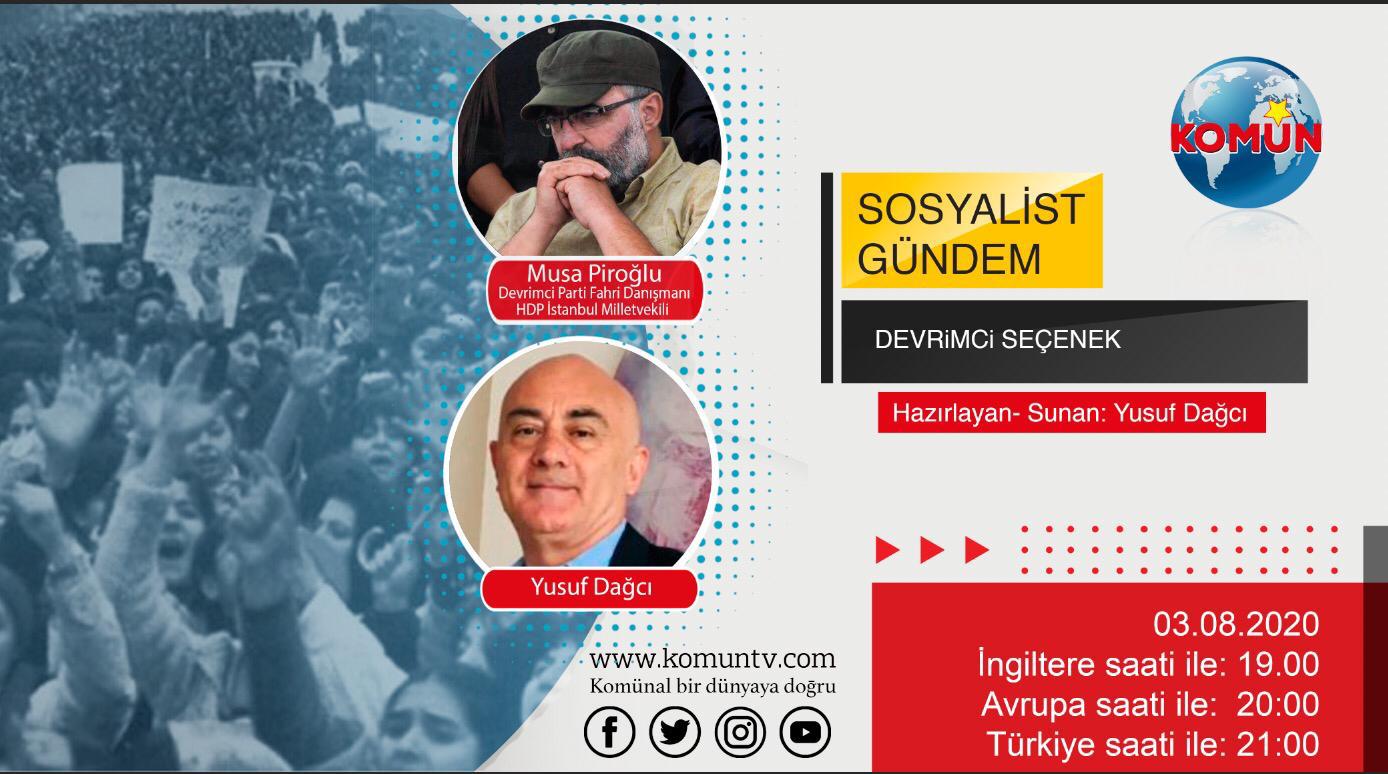 Komün TV, ‘Sosyalist Gündem’ başlığıyla devrimci, demokrat ilerici güçlerle gündemi değerlendirmeye devam ediyor. Yusuf Dağcı’nın sunduğu Sosyalist Gündem programının konuğu Devrimci Parti Fahri Danışmanı- HDP İstanbul Milletvekili Musa Piroğlu