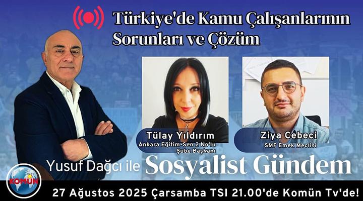 Yusuf Dağcı’nın hazırlayıp sunduğu Sosyalist Gündem programı bu akşam, “Türkiye’de Kamu Çalışanlarının Sorunları ve Çözüm” konusu ile izleyici karşısına çıkıyor.