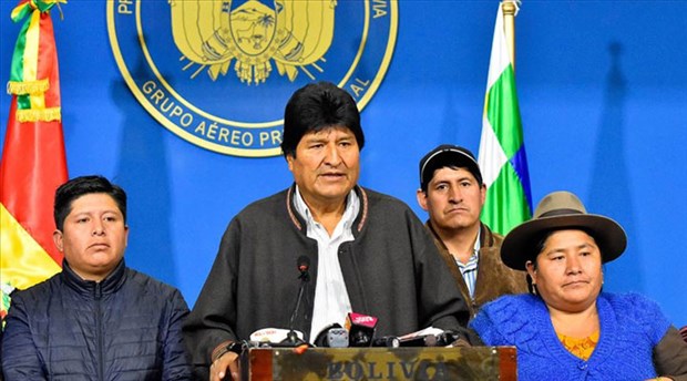 Morales, 20 Ekim’deki seçimlerde tekrar aday olabilmek için gerekli anayasa değişikliğini öngören 2016 referandumundan hayır oyu çıkmasına rağmen Anayasa Mahkemesinin “yeniden seçilmenin politik hak” olduğuna hükmetmesiyle seçimlere katılmıştı.