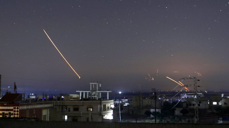 Suriye devlet televizyonu da hava savunma sistemlerinin düşen roketlerin imha edildiği görüntüleri gösterdi.