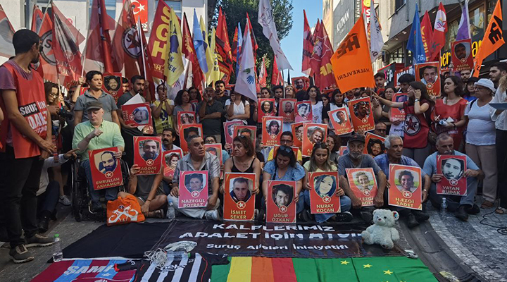 Suruç Aileleri İnisiyatifi, Urfa’nın Suruç ilçesinde 20 Temmuz 2015’de IŞİD’in bombalı saldırısı sonucu katledilen 33 düş yolcusunu katledilişlerinin 10’uncu yılında İstanbul Kadıköy’de bulunan Halitağa Caddesi’nde andı. Katliamda hayatını kaybedenlerin fotoğraflarının taşındığı anmada “Kalplerimiz adalet için atsın” yazılı pankartı açıldı.