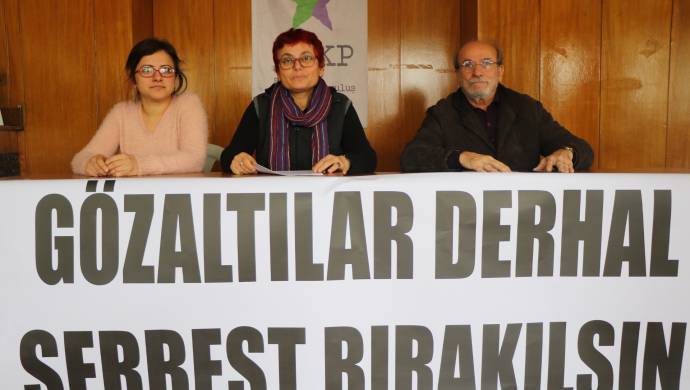 “Gözaltılar derhal serbest bırakılsın” talebinin bulunduğu pankartının açıldığı toplantıda basın açıklamasını SYKP adına Merkez Yürütme Kurulu üyesi Gülseren Pusatlıoğlu yaptı. HDP aynı cesaretle ve kararlılıkla yoluna devam edecektir denilen açıklamda toplumsal muhalefetin bütününe yönelik bir baskı olduğunu dile getirdi.Ayrıca “Hemen her gün farklı illerde gerçekleşen operasyonlarla muhalif bütün kesimler üzerinde baskı kuruluyor. Başta HDP, HDK olmak üzere, sol-sosyalistler, insan hakları savunucuları, savaş karşıtları, sosyal medyadan itiraz edenler gözaltına alınıyor, tutuklanıyor” diye konuştu.