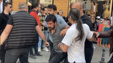 Saatler önce Kadıköy ilçe binası önünü ablukaya alan sivil polisler SYKP üyelerin sözlü ve fiziki taciz etti. Polise muhbirlik yaptığı düşünülen bir esnaf SYKP üyelerine bıçaklı saldırarak polise destek oldu.