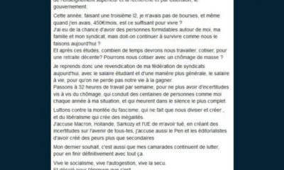 Fransa'da 22 yaşındaki bir öğrenci, ülkesinin kredi ve yurtlar kurumu önünde Macron, Hollande, Sarkozy ve Le Pen gibi burjuva siyasetçileri ve...