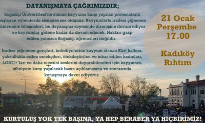 Boğaziçi Dayanışması ‘kayyum rektör’ protestolarının devam edeceğini duyurarak 21 Ocak Perşembe günü saat 17.00’de Kadıköy Rıhtım’da yapılacak toplantıya çağrı yaptı