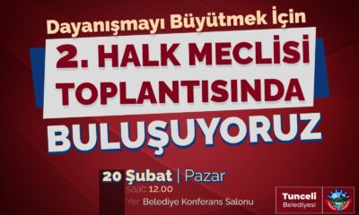 Dersim Demokratik Halk Dayanışması, halkçı yerel yönetim anlayışıyla 2. Halk Meclisi Toplantısı'nı 20 Şubat'ta Dersim Belediyesi konferans salonunda düzenleyecek.