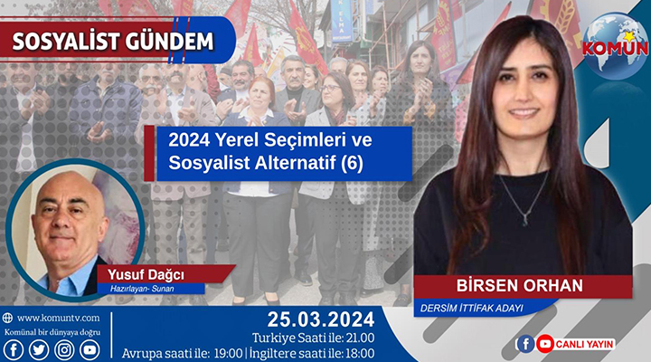 “2024 Yerel Seçimleri ve Sosyalist Alternatif-6” konusunun ele alınacağı Sosyalist Gündem programını bu akşam Türkiye saatiyle 21.00’de Komün TV ekranlarından izleyebilirsiniz.