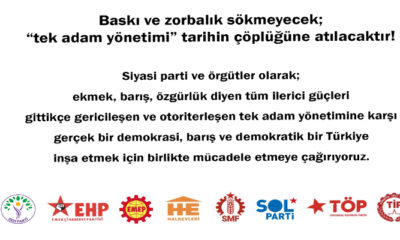 Siyasi partiler ve siyasi örgütler, Türkiye’de artan otoriterleşme, baskı politikalarına karşı ve tek adam rejimine karşı tüm herkesi ortak mücadele etmeye...
