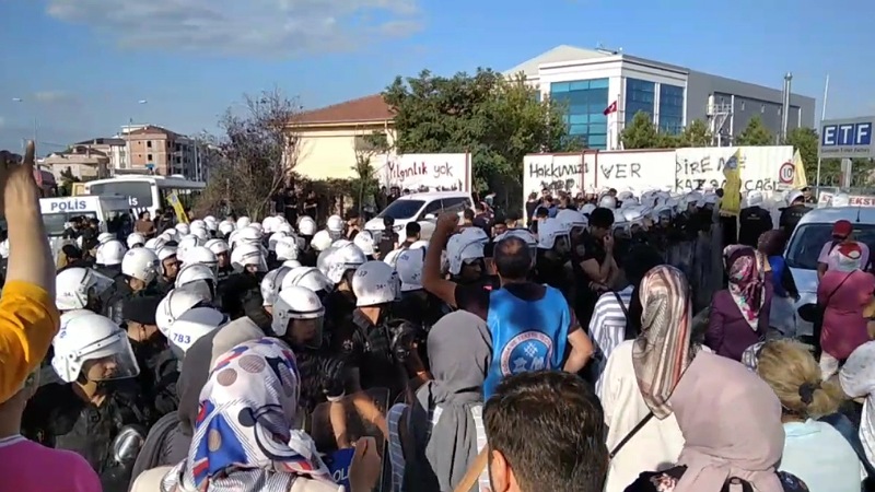 İşçilerin direnişinin sürdüğü ETF Tekstil’de direniş alanını ablukaya alan polis, fabrikanın içine girerek işçilere biber gazıyla saldırdı.