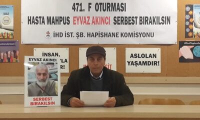 İnsan Hakları Derneği (İHD) İstanbul Şubesi Hapishane Komisyonu, bugünkü 477. F Oturması’nda 26 yıldır hapiste olan Emin Aladağ’ın serbest bırakılmasını talep...