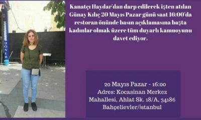 İstanbul Bahçelievler'de bulunan Kanatçı Haydar restoranda çalışan Günay Kılıç, haklarını istediği için yöneticilerle tartıştığını, darbedilerek tazminatsız bir şekilde işten atıldığını söyledi