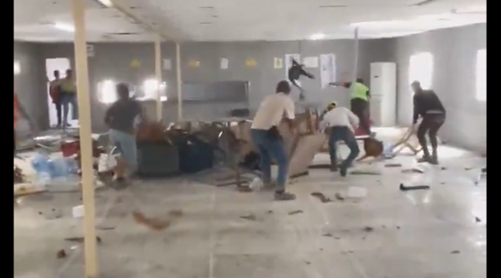 Fikirtepe'deki Ilgın İnşaat şantiyesinde kendilerine kirli tabldotlarla yemek servis edilmesine karşı inşaat işçileri, yemekhanedeki masa ve sandalyeleri dağıtarak tepki gösterdi.