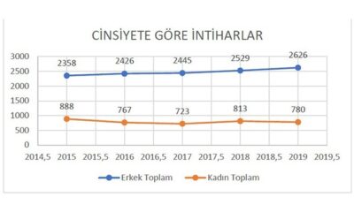 Sosyo-Politik Saha Araştırmaları Merkezi tarafından TÜİK verilerinden yararlanılarak derlenen çalışmaya göre, 2015-2019 yılları arasında 16 bin 355 intihar vakası yaşandı