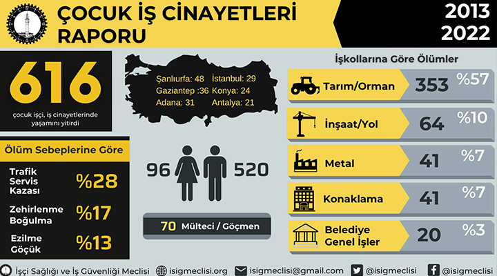 İşçi Sağlığı ve İş Güvenliği Meclisi'nin (İSİG), 20 Kasım Dünya Çocuk Hakları Gününde açıkladığı rapora göre 2013 yılından bugüne geçen on yılda “en...