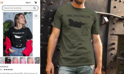 ABD menşeli alışveriş platformu Etsy, C-17 askeri nakliye uçağından aşağı düşen insanların silüetlerinin ve "Kabil Atlama Kulübü" ifadelerinin yer aldığı tişörtleri...