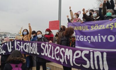 İstanbul Sözleşmesi’nin Cumhurbaşkanlığı Kararnamesi ile feshedilmesine karşı Kadıköy’de bulunan Beşiktaş İskelesi’nde bir araya gelen yüzlerce kadın, "İstanbul Sözleşmesi'nden nefret ediyorlar, çünkü...