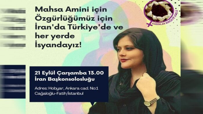 Kadınlar Birlikte Güçlü, katledilen Mahsa Amini için yarın İran Başkonsolosluğu önünde yapacağı eyleme "Özgürlüğümüz için İran’da, Türkiye’de ve her yerde isyandayız!"...