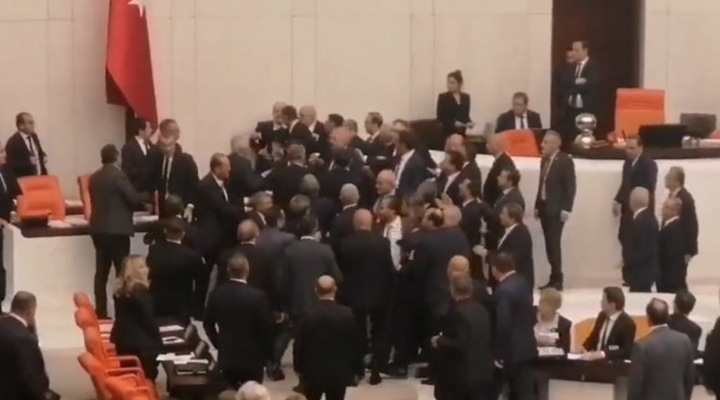 TBMM Genel Kurulu’nda CHP Grup Başkanvekili Engin Özkoç’un basın toplantısında Cumhurbaşkanı Recep Tayyip Erdoğan’a yönelik ifadeleri nedeniyle milletvekilleri arasında yumruklu kavga...