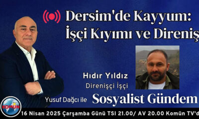 “Dersim’de Kayyum: İşçi Kıyımı ve Direniş” konusunun ele alınacağı Sosyalist Gündem programını yarın akşam Türkiye saatiyle 21.00’de Komün TV ekranlarından izleyebilirsiniz.