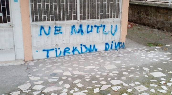 HDP Keçiören İlçe Örgütü binasına ırkçı saldırıda bulunan kimliği belirsiz kişi veya kişiler, “Ne mutlu Türküm diyene” yazılaması yaptı.