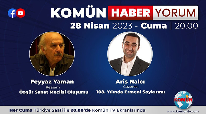 “108. Yılında Ermeni Soykırımı” ile “Özgür Sanat Meclisi Oluşumu” konularının ele alınacağı Komün Haber-Yorum programı bu akşam Türkiye saatiyle 20.00’de Komün...