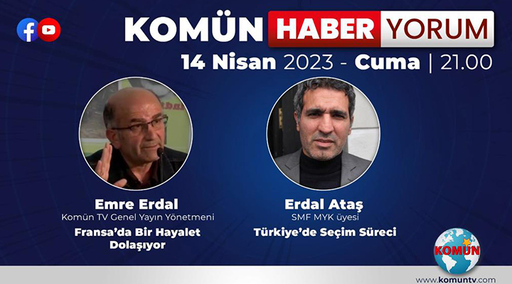 “Türkiye’de Seçim Süreci” ile “Fransa’da Bir Hayalet Dolaşıyor” konularının ele alınacağı Komün Haber-Yorum programı bu akşam Türkiye saatiyle 21.00’de Komün TV’de.