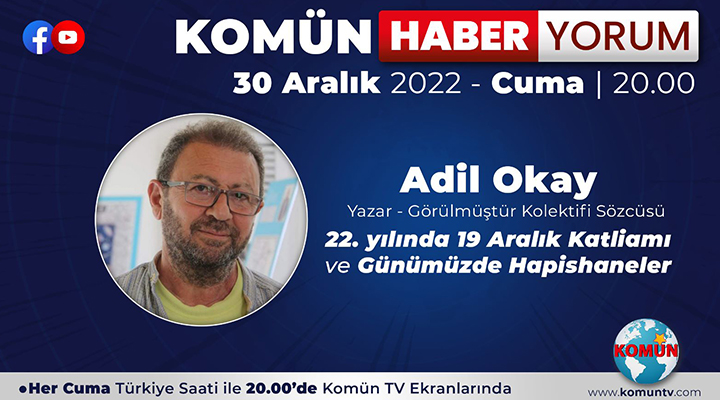Komün TV’de her hafta yayınlanan, önemli gelişmelerin ele alındığı Komün Haber-Yorum programını bu akşam TSİ 20.00’de Komün TV Youtube kanalından izleyebilirsiniz.