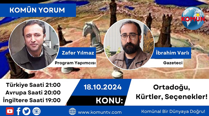 “Orta Doğu, Kürtler, Seçenekler!” konusunun ele alınacağı Komün Yorum programı bu akşam Türkiye saatiyle 21.00’de Komün TV’de.