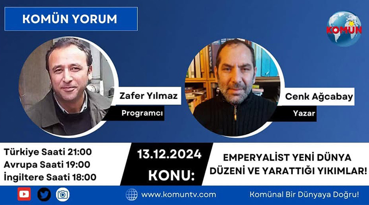 “Emperyalist Yeni Dünya Düzeni ve Yarattığı Yıkımlar!” konusunun ele alınacağı Komün Yorum programı bu akşam Türkiye saatiyle 21.00’de Komün TV’de.