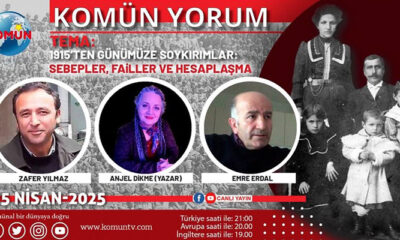 “1915’ten Günümüze Soykırımlar: Sebepler, Failler ve Hesaplaşma” konusunun ele alınacağı Komün Yorum programı bu akşam Türkiye saatiyle 21.00’de Komün TV’de.