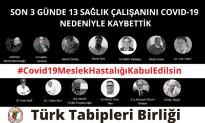 Türk Tabipler Birliği(TTB), sosyal medya hesaplarından yaptığı açıklama ile son 3 günde 13 sağlık emekçisinin Kovid-9 nedeniyle yaşamını yitirdiğini açıkladı