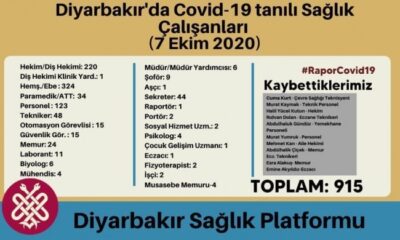 Diyarbakır Sağlık Platformu, 7 Ekim itibariyle kentte koronavirüs salgınına yakalanan sağlık çalışanı sayısının 915 olduğunu açıkladı