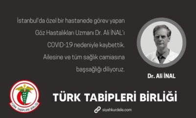 Türk Tabipleri Birliği (TTB), sosyal medya hesabı üzerinden yaptığı açıklamada, Göz Hastalıkları Uzmanı Dr. Ali İnal'ın koronavirüs nedeniyle yaşamını yitirdiğini duyurdu.