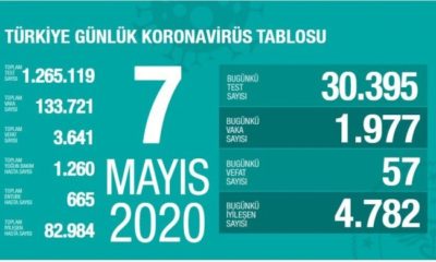 Türkiye’de koronavirüs nedeniyle son 24 saatte 57 kişi daha hayatını kaybetti. Böylece toplam can kaybı 3 bin 641’e yükseldi