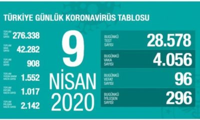 Türkiye’de koronavirüs nedeniyle son 24 saatte 96 kişi daha hayatını kaybetti. Buna göre toplam hayatını kaybedenlerin sayısı 908’e yükseldi