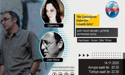 Yaşamını Yitiren Şair-Yazar Mehmet Çetin anısına Komün TV'de bir anma programı düzenlenecek. Zafer Yılmaz'ın hazırlayıp sunduğu program 14 Kasım Cumartesi günü...