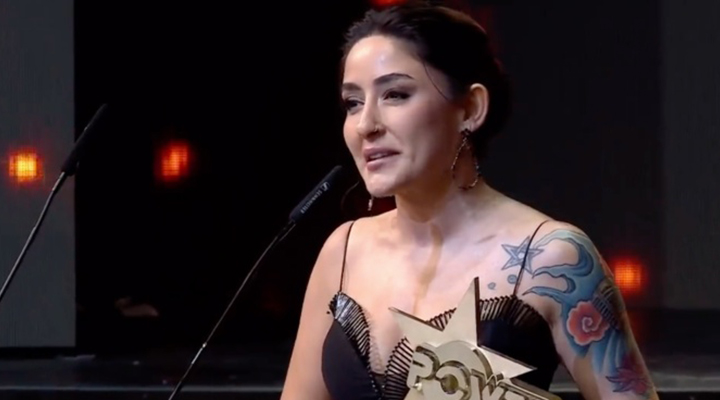 Şarkıcı Melek Mosso, PowerTürk Müzik Ödülleri töreninde aldığı ‘en iyi cover şarkı’ ödülünü ‘yargılanan, ittirilen, katledilen bütün kadınlara’ armağan etti.