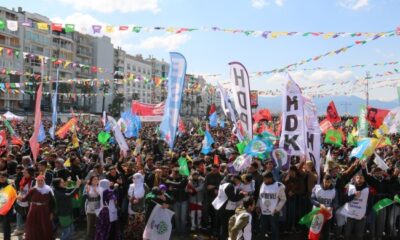 İzmir’de Gündoğdu Meydanı’nda toplanan on binlerce kişi, Newroz’u coşkuyla kutluyor.