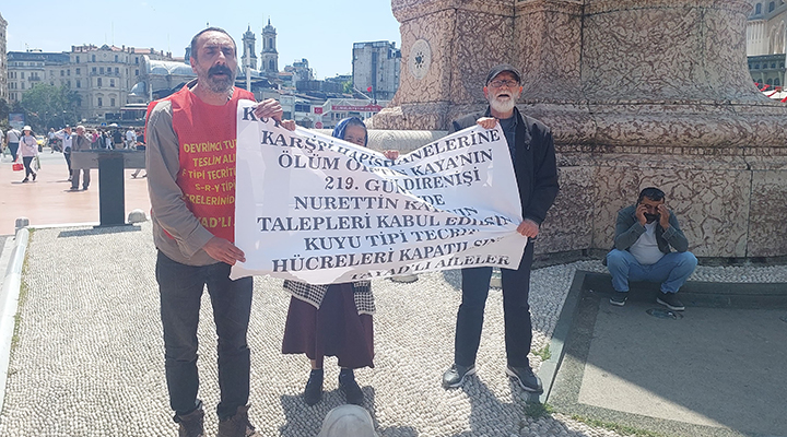 Ölüm orucu direnişinin 219’uncu gününde olan Nurettin Kaya için Taksim açıklama yapan TAYAD'lı Aileler, "Nasıl F Tipi hapishanelerini parçaladıysak kuyu tipi...