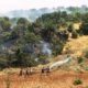 Mardin’in Nusaybin ilçesinde dağlık bölgede bulunan ormanlık alanda başlayan yangının Kuruköy’e (Xerabê Bava) doğru ilerlediği belirtildi