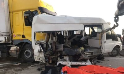 Antep'te, tarım işçilerini taşıyan minibüse TIR çarptı. Kazada minibüsteki 3 işçi yaşamını yitirdi, 15 işçi de yaralandı.