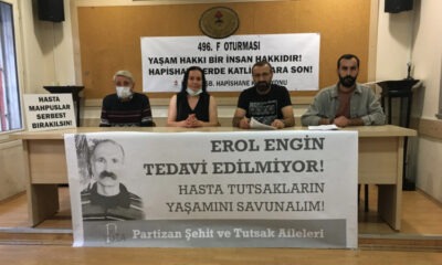Tekirdağ 2 No’lu F Tipi Hapishanesi’nde tutuklu bulunan Erol Engin’in kafasında mermi çekirdeği bulunduğu, tedavi yerine vitamin ilacı verildiği belirtildi.