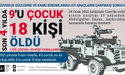 Türkiye İnsan Hakları Vakfı (TİHV) verilerine göre son 4 yılda güvenlik güçlerine ve kamu kurumlarına ait araçların çarpması sonucu 9’u çocuk...