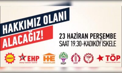 7 siyasi hareket, "Yaşanacak bir ücret için" 23 Haziran Perşembe günü 19.30'da Kadıköy İskelesi'ne çağrı yaptı.