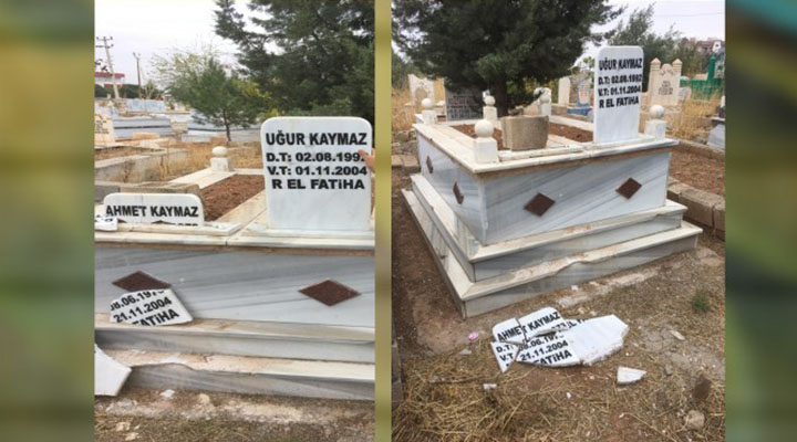Mardin Kızıltepe'de 12 yaşındaki iken 13 kurşunla katledilen Uğur Kaymaz ve babasının mezarı kimliği belirsiz kişi ya da kişilerce saldırıya uğradı.
