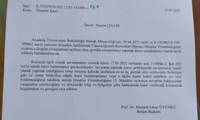 Eskişehir'de Yunus Emre KYK yurdundaki taciz olayına tepki gösteren ÖGK üyesi Sinem Çelebi, Bölüm Bakanı Üyümez tarafından "Üstten emir geldi, eylemi...